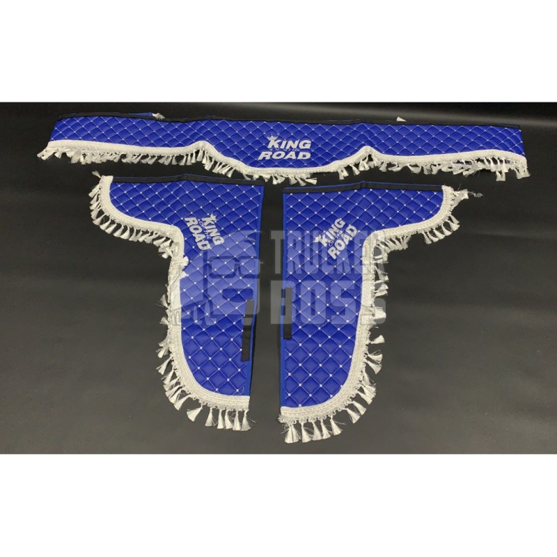 Шторки эко-кожа "KING OF THE ROAD" Синие PREMIUM